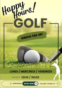 Tous les lundis, mercredis et vendredis, bénéficiez d’un tarif spécial à 28 € pour un parcours 9 trous, avec deux départs privilégiés à 12h10 et 16h00.